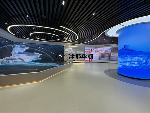 今天分享的是泾源水利水电办公楼装修设计实景照片,整体而言,该办公楼空间是银川装修公司津都华丽对“专业行业办公展厅”的优质落地:以极简工业风为基底,用科技载体承载水利水电的专业叙事,在功能实用性与主题表达力之间找到平衡,既展现了行业的硬核科技感,又传递了水利工程的人文价值。材质与细节上,银川装修公司津都华丽的“实用美学”理念贯穿其中:展墙采用模块化金属嵌板,既符合水利展厅的科技质感,又满足内容更新的弹性需求;灯光系统以间接照明为主,环形灯带与嵌入式射灯的组合,既保证空间明亮度,又通过光影层次营造科技氛围;而流线型展陈台的圆角设计、地面的隐形收边工艺,则体现了津都华丽在工业风设计中“细节柔化”的巧思。